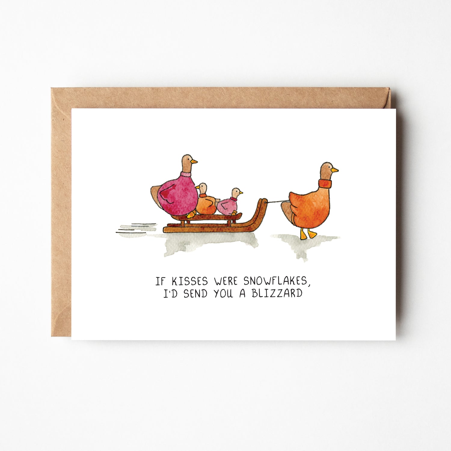 Kaartje kerst ganzen op de slee
